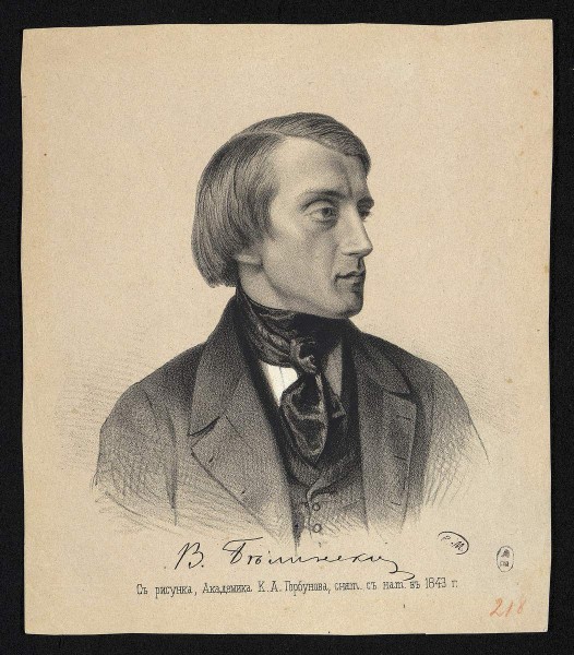 Белинский Виссарион Григорьевич (1811–1848) — писатель, критик, философ. Осенью 1839 года поселился в Петербурге на Грязной улице (ныне ул. Марата). С 1840 по 1846 год писал статьи и библиографические заметки о новых книгах и брошюрах для журнала «Отечественные записки». Работал в журнале «Современник» в качестве постоянного сотрудника и редактора критического отдела (октябрь 1846). Часто менял петербургские адреса: Петербургская сторона (Большой пр.); Моховая ул. (участок д. 11); Васильевский остров (Малый пр., 156/53), дом А. Ф. Лопатина (Невский пр„ 68/40, угол Фонтанки); дом М. И. Федорова (наб. Фонтанки, 14). Последние месяцы жизни Белинского прошли в квартире на Литовском канале (дом не сохранился). Умер от чахотки, похоронен на Волковом кладбище. Софья Бородина // Санкт-Петербург: Портрет города и горожан. СПб, 2003. С. 331.