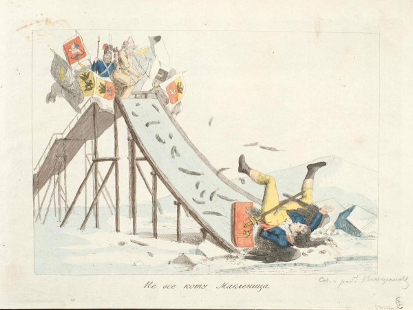 Расцвет политической сатиры на темы нашествия на Русь «двунадеся языков» связан, прежде всего, с творчеством Алексея Венецианова, Ивана Теребенева и Ивана Иванова. Главный герой их карикатур Наполеон («Мыльные пузыри», «Русская пляска», «Бегство Наполеона», «Проезд высокого путешественника от Варшавы с ощипанным орлом и ознобленным мамелюком») хорошо узнаваем по невысокой, плотной фигуре, форменной одежде и знаменитой «наполеоновской» треуголке, однако же, естественно, лишен всякого величия, романтической загадочности и характерных «высоких дум» на челе.