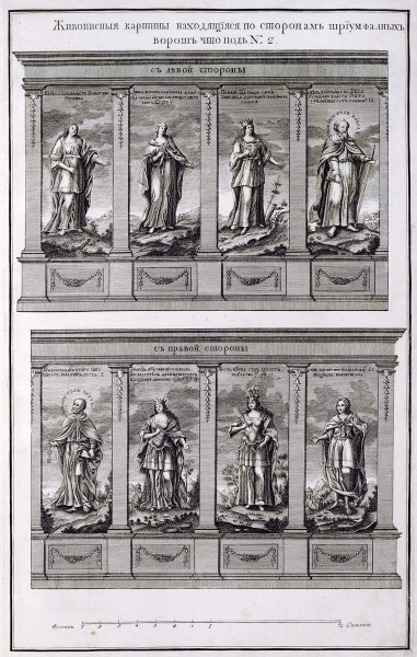 Эти картины были размещены на триумфальных воротах в Китай-городе, лист № 2.