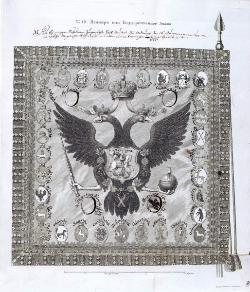 Панир или Государственное знамя Российской империи в XVIII веке представляло собой квадратное полотнище жёлтого цвета с вышитым в центре чёрным двуглавым орлом в окружении 31 герба русских городов и земель. Мультимедийная программа к выставке «Коронационный альбом Елизаветы Петровны. 1744» (2023).