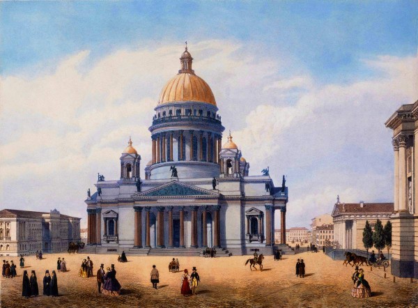 Торжественное освящение Исаакиевского собора было совершено в присутствии императора Александра II. С 1858 года собор стал кафедральным храмом Российской столицы. Ансамбль Сенатской площади, дошедший до сегодняшних дней, сформировался в 1840-х годах, когда был заключен в трубу и засыпан Адмиралтейский канал. Анна Метелкина // Санкт-Петербург: Портрет города и горожан. СПб, 2003. С. 114.