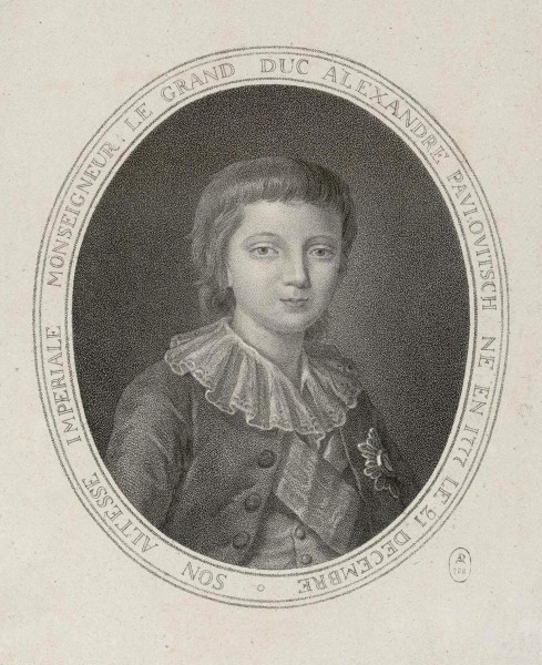 Великий князь Александр Павлович – будущий российский император (с 1801) Александр I (1777–1825). Старший сын великого князя Павла Петровича (Павла I) и великой княгини Марии Федоровны. До 1801 цесаревич.