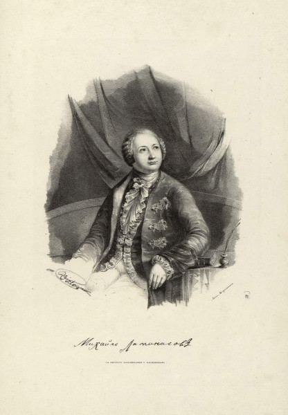 По инициативе Ломоносова в 1755 году был основан Московский университет. Автор трудов по российской истории. Ломоносов — реформатор русской литературы, заложил основы современного русского литературного языка, автор первых подлинно научных трудов в области грамматики, филологии, риторики, правил стихосложения; положил начало научной терминологии; возродил технику смальтовой мозаики. С 1763 года член Императорской академии художеств. Похоронен в Александро-Невской лавре. // Елена Филиппова. Санкт-Петербург: Портрет города и горожан. СПб, 2003. С. 288.