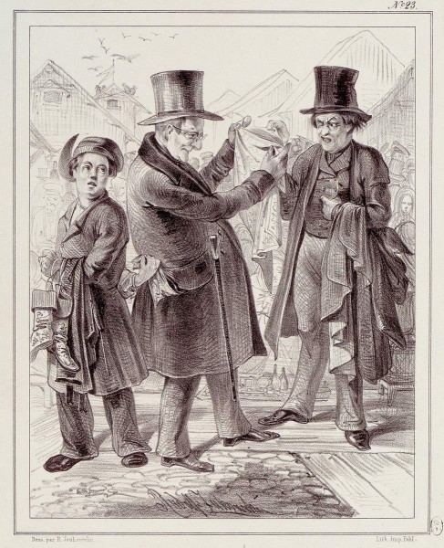 Толкучий рынок располагался рядом с Новоалександровским рынком, на территории, занимаемой в настоящее время домом 44 по Вознесенскому проспекту. Каждое воскресенье на Толкучем рынке бывал так называемый развал. Здесь собирались тряпичники и старьевщики со всего Петербурга. Автор „физиологических" очерков „Брюхо Петербурга" А. А. Бахтиаров писал в конце XIX столетия, что бедняк, войдя на Толкучий рынок, мог одеться там с ног до головы за 5 рублей, причем вся экипировка, кроме сапог, будет новая, точно „с иголочки". Галина Павлова // Санкт-Петербург: Портрет города и горожан. СПб, 2003. С. 278.