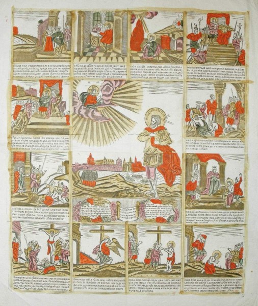- Бумага, гравюра резцом раскрашенная (из 4-х листов). И.:66 х 56. Л.:82 х 68