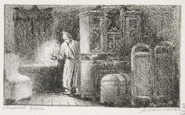 Беликов дома. Иллюстрация к повести А. П. Чехова «Человек в футляре»