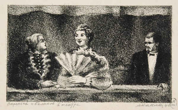 Варенька и Беликов в театре. Иллюстрация к повести А. П. Чехова «Человек в футляре»
