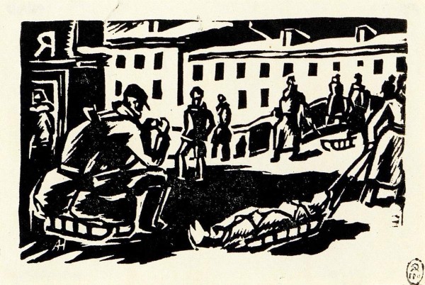 - Бумага, линогравюра. И.: 7,8 х 12,3; л.: 9,1 х 13,6