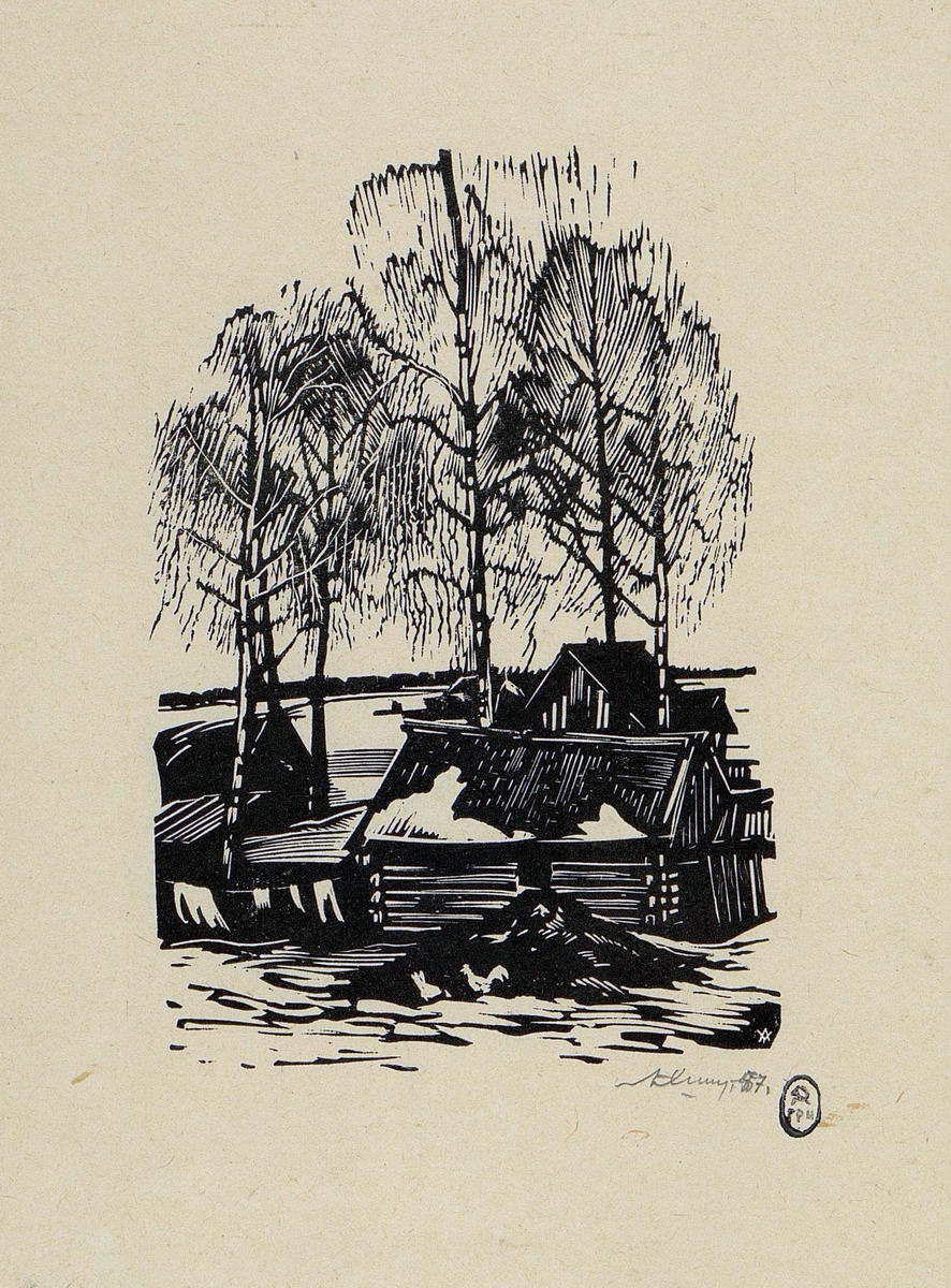 - Бумага, ксилография. И.: 12,7х8,6. Л.: 21,6х14,1