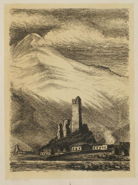 - Бумага, литография с тоном (пробный оттиск). И.: 21,0 х 15,6. Л.: 36,2 х 28,3