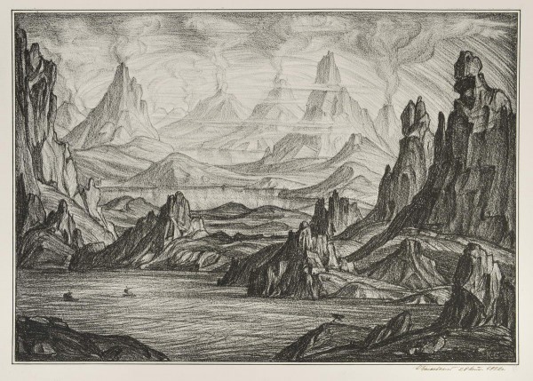 О родной Тавриде и всей планете Земля мастер повествует в двадцати литографиях 1922 года, вошедших в альбом «Автолитографии» (М., 1923). Он заново проходит все этапы своего творчества, воскрешает прозрения прошлого, порой воспроизводит уже известные свои мотивы. Владимир Круглов. Константину Богаевскому 150 лет // Константин Богаевский. СПб. 2023. С. 10.