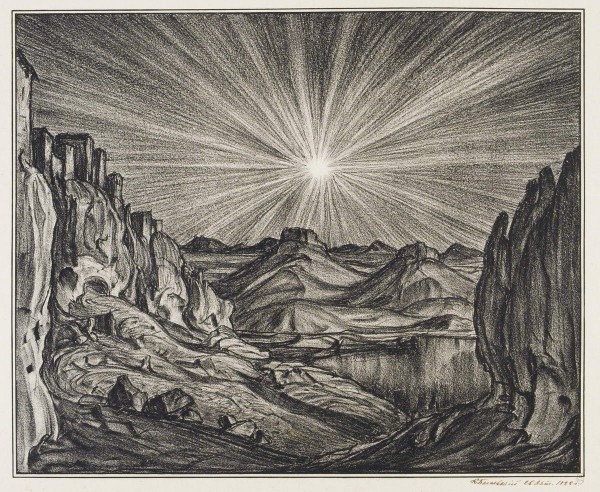 О родной Тавриде и всей планете Земля мастер повествует в двадцати литографиях 1922 года, вошедших в альбом «Автолитографии» (М., 1923). Он заново проходит все этапы своего творчества, воскрешает прозрения прошлого, порой воспроизводит уже известные свои мотивы. Владимир Круглов. Константину Богаевскому 150 лет // Константин Богаевский. СПб. 2023. С. 10.
