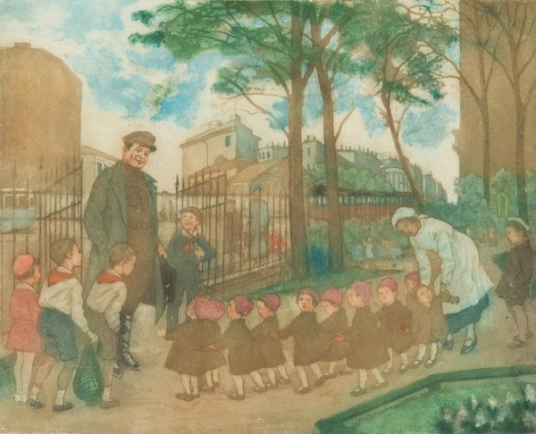 - Бумага, мягкий лак, цветная акватинта. И.:31х39. Д.:31х39