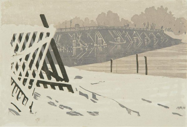- Paper, woodcut, coloured linocut. 14,9 × 22