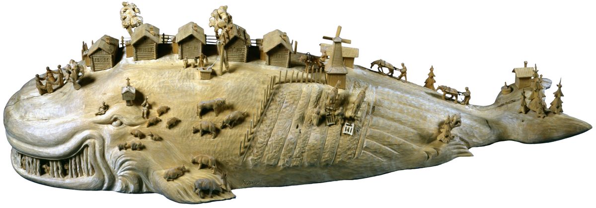 "Чудо-юдо рыба-кит“ – уникальная работа мастера А. Д. Зинина, оригинально отражающая основные сюжеты сказки П. П. Ершова "Конек-горбунок“.