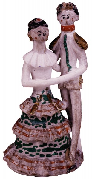 «Дама и военный» — в виде танцующей или гуляющей пары один из сюжетов тульских жанровых композиций. Костюм дамы — бальный, декольтированный. Военный затянут в мундир с эполетами, орденской лентой через плечо, в узких брюках с лампасами. Он нежно держит даму за талию. Для устойчивости фигурка военного присоединена к конусу-платью дамы, его тонкие ножки незаметно теряются в пышных оборках.