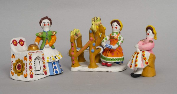 Зоя Васильевна Пенкина — одна из выдающихся мастериц дымковской игрушки, первая начала лепить многофигурные сюжетные композиции на темы сказок. Композиция «Сказка о царе Салтане» впервые была показана на ее персональной выставке в Русском музее в 1974 году.