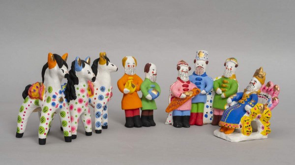 Зоя Васильевна Пенкина — одна из выдающихся мастериц дымковской игрушки, первая начала лепить многофигурные сюжетные композиции на темы сказок. Композиция «Сказка о царе Салтане» впервые была показана на ее персональной выставке в Русском музее в 1974 году.