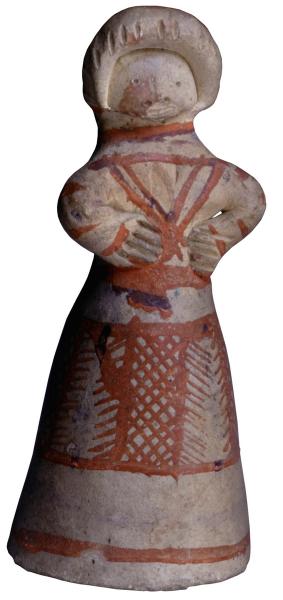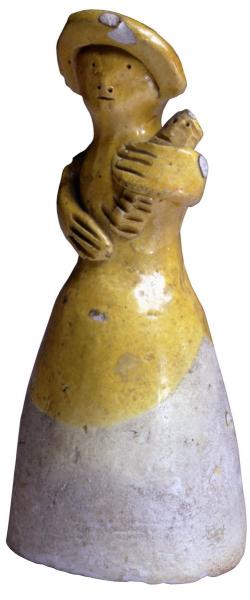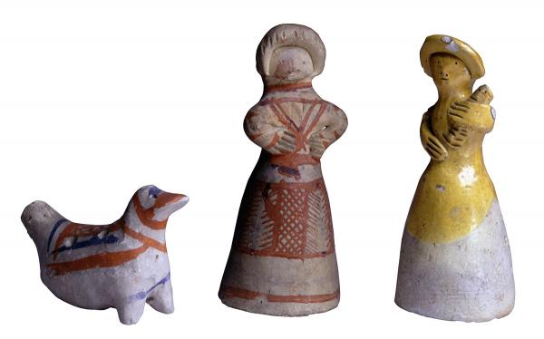 На внутренней стороне колокола-юбки имеется надпись, свидетельствующая, что куклы сделаны в Инжавинье в 1894 и 1903 гг., а также порядковые номера коллекции Кустарного музея. Существование в начале XX в. подобных архаических по трактовке игрушек подсказывает и отчасти объясняет исследователям происхождение и содержание образов глиняной игрушки.