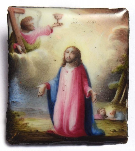 - Финифть, медь, роспись полихромная. 4 х 3,5