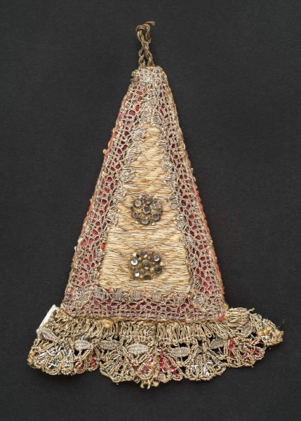 Косник — девичье украшение, вплетавшееся в косу. Оно имеет вид треугольника, сердца, банта из длинных лент, украшенных золотным шитьем, вышивкой жемчугом или перламутром, кружевом. Во всех ты, душенька, нарядах хороша. Традиционный праздничный костюм XVIII–XX веков. СПБ, 2015. С. 70.