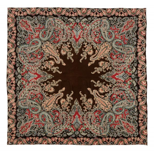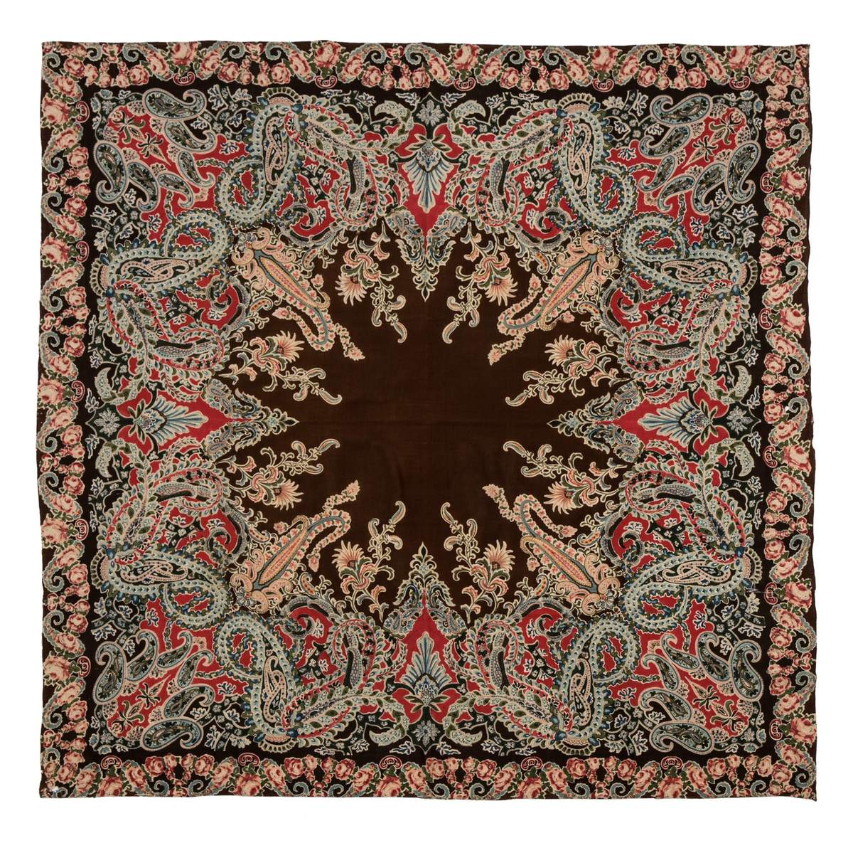 - Шерсть с хлопком, ручная набойка. 167 х 177. С клеймом