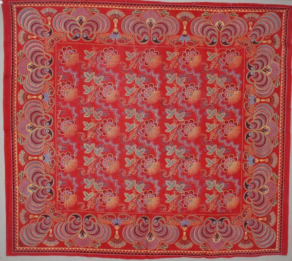 Считается, что хлопчатобумажные красные ткани с растительным орнаментом изначально были импортным товаром (Каталог набивных тканей, 2010. Кат.: А 69, С. 68; А 72, С. 69; А 68, С. 65), не случайно и российские красные ситцы называют «заграничными» («аглицкими», «датскими», «хранцузскими»)  как обозначение чего-то покупного, не сделанного дома, своими руками. На появление таких названий оказал влияние сам процесс окрашивания ситцев с применением «французского краппа» — натурального красителя на основе корня марены, попавшего на российские фабрики из Англии.