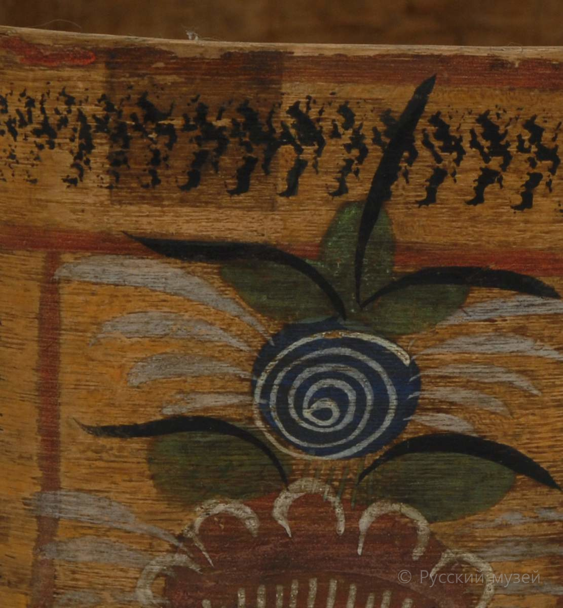 В процессе реставрации укреплена рыхлая, изъеденная жуком древесина. Для консервации торцевого края и склейки разрыва были восполнены утраты основы. Склейка выполнена с использованием микалентных стяжек, деревянных распоров и пластиковых зажимов. Удалены загрязнения, въевшиеся в лаковую пленку, утоньшены расточкой затеки и сгустки лака. Выполнены акварельные тонировки в технике «пуантель». Восстановлен рисунок росписи, для чего использованы фрагментарно сохранившихся элементы и многочисленные аналоги.