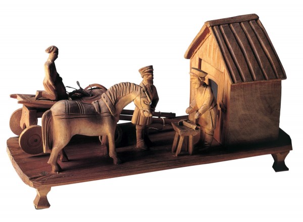Главная Онлайн ресурсыКоллекцияНародное искусство Кузница Богородское Кузница Деревня Богородское, Владимирская губерния. XIX век Дерево, резьба. 13,5 х 28 х 12 ОНИ/Д-223 Экспонирование Флигель Росси Открыть панораму зала в виртуальном туре Зал 8. Народная игрушка, вышивка и кружевоплетение XIX – начала XX веков Период Первая половина XIX века Типология / подвидНародная игрушка | Деревянная игрушка Ключевые слова Кареты | лошади | игрушки, куклы Поделиться «Виртуальный Русский музей» в социальных сетях: