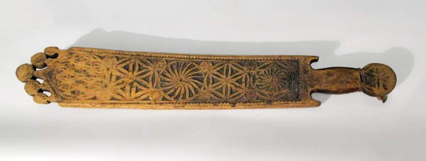 Наталья Павловна Колпакова (1902–1994) — доктор филологических наук, член Союза писателей СССР, автор множества работ о песенном и былинном творчестве*. Ее собрание произведений народного искусства, насчитывающее 202 памятника, было приобретено ГРМ в 1992–1994 годах. Работая секретарем секции крестьянского искусства при Институте истории искусств, с 1926 года Колпакова принимала участие в фольклорно-этнографических экспедициях по Русскому Северу**, Уралу и Поволжью. Понимая важность комплексного метода изучения народного искусства, она интересовалась изобразительным и декоративным творчеством носителей и хранителей словесного фольклора. Долбленые солоницы-утицы, плетеные туеса, расписные палащельские ложки, предметы рыболовного промысла, элементы народного костюма жителей Севера были привезены из селений по берегам Пинеги, Мезени, Печоры и с побережья Белого моря в конце 1920-х — начале 1930-х годов. Д. С. Нацевская, М. В. Плотникова. Колпакова Наталья Павловна // Выдающиеся собиратели народного искусства. СПб, 2011. С. 140.