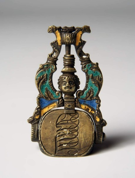 - Медный сплав, литье, эмаль. В. (с ручкой) – 5; ш. печати – 3; грани – 1,9 х 2,3