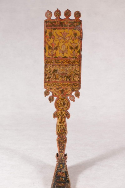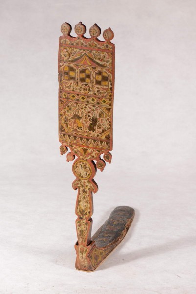 Лопасть прялки. Деталь с пряхой. Оборотная сторона. Деталь «чаепитие»