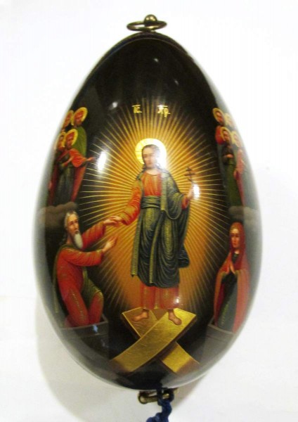 Яйцо пасхальное с изображениями сцены Сошествия в ад и княгини Ольги