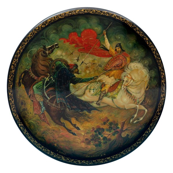 - Папье-маше, темпера, лак, миниатюрная живопись. Д-9,2 В-2
