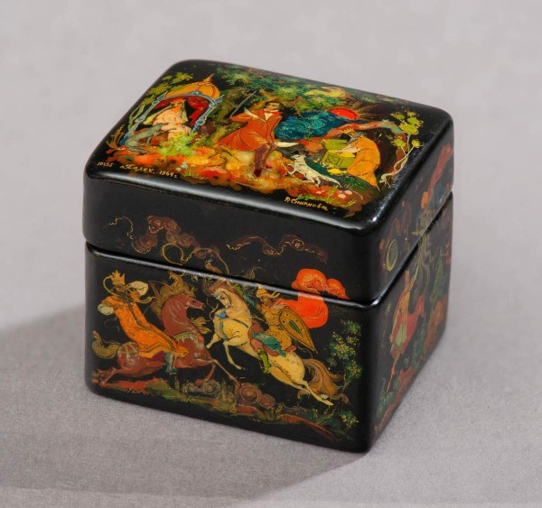 - Papier-mâche, tempera, gold, varnish, миниатюрная живопись. 2,5 х 3 х 2,8