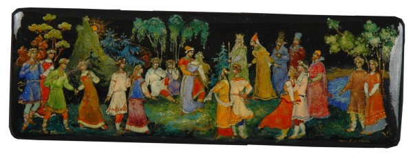 - Папье-маше, темпера, золото, лак, роспись. 3,2 х 9 х 3,5