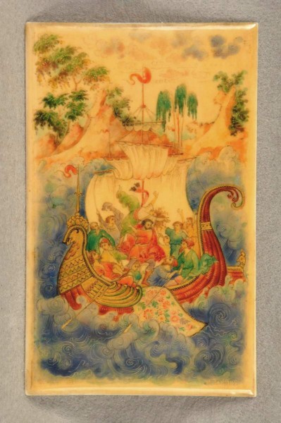- Слоновая кость, tempera, gold, varnish, миниатюрная живопись. 10,7 х 6,7 х 0,1