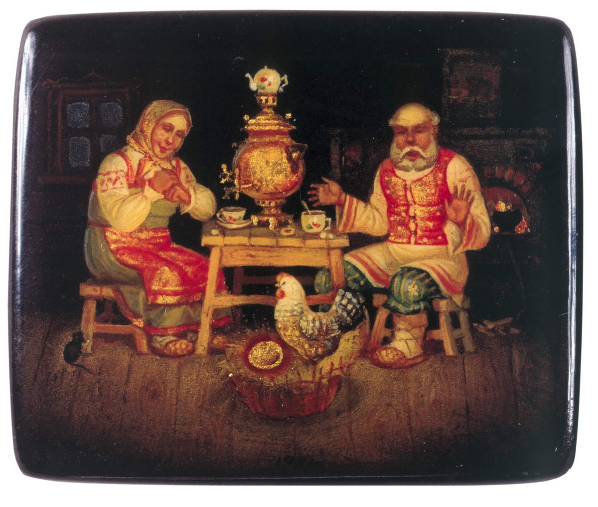 - Papier-mâche, oil, varnish, gold, миниатюрная живопись. 3,5 х 4 х 2,5