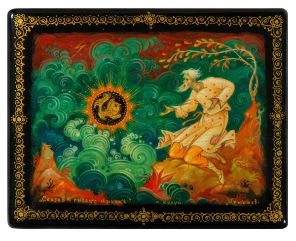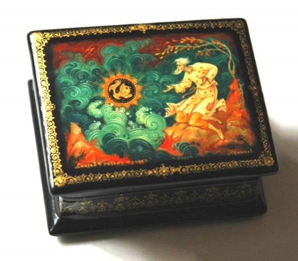 - Папье-маше, темпера, золото, лак, миниатюрная живопись. 4 х 5 х 2,5