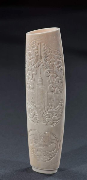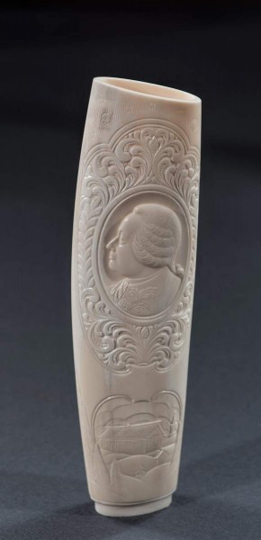 - Кость моржовая, резьба рельефная, гравировка. 26,5 х 7,5 х 36