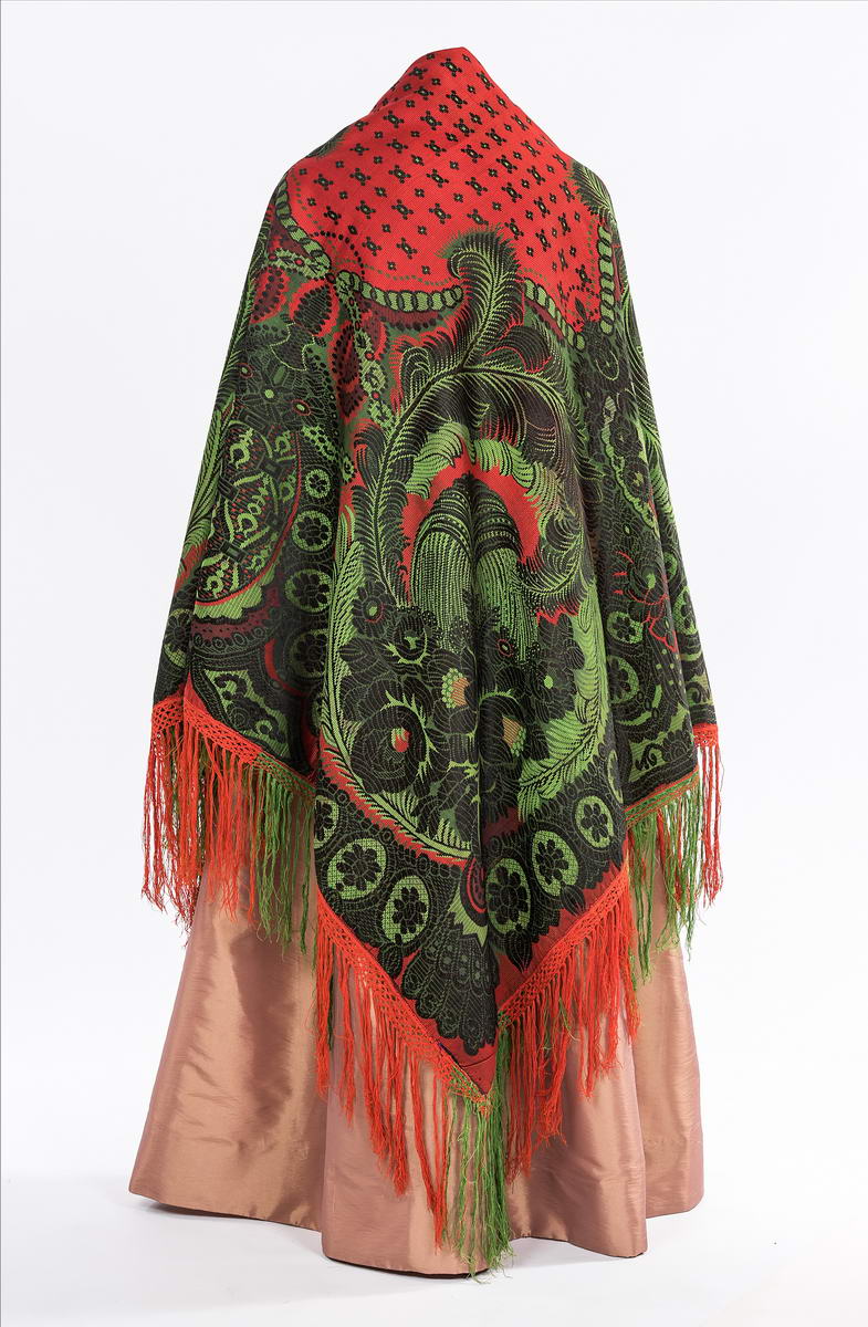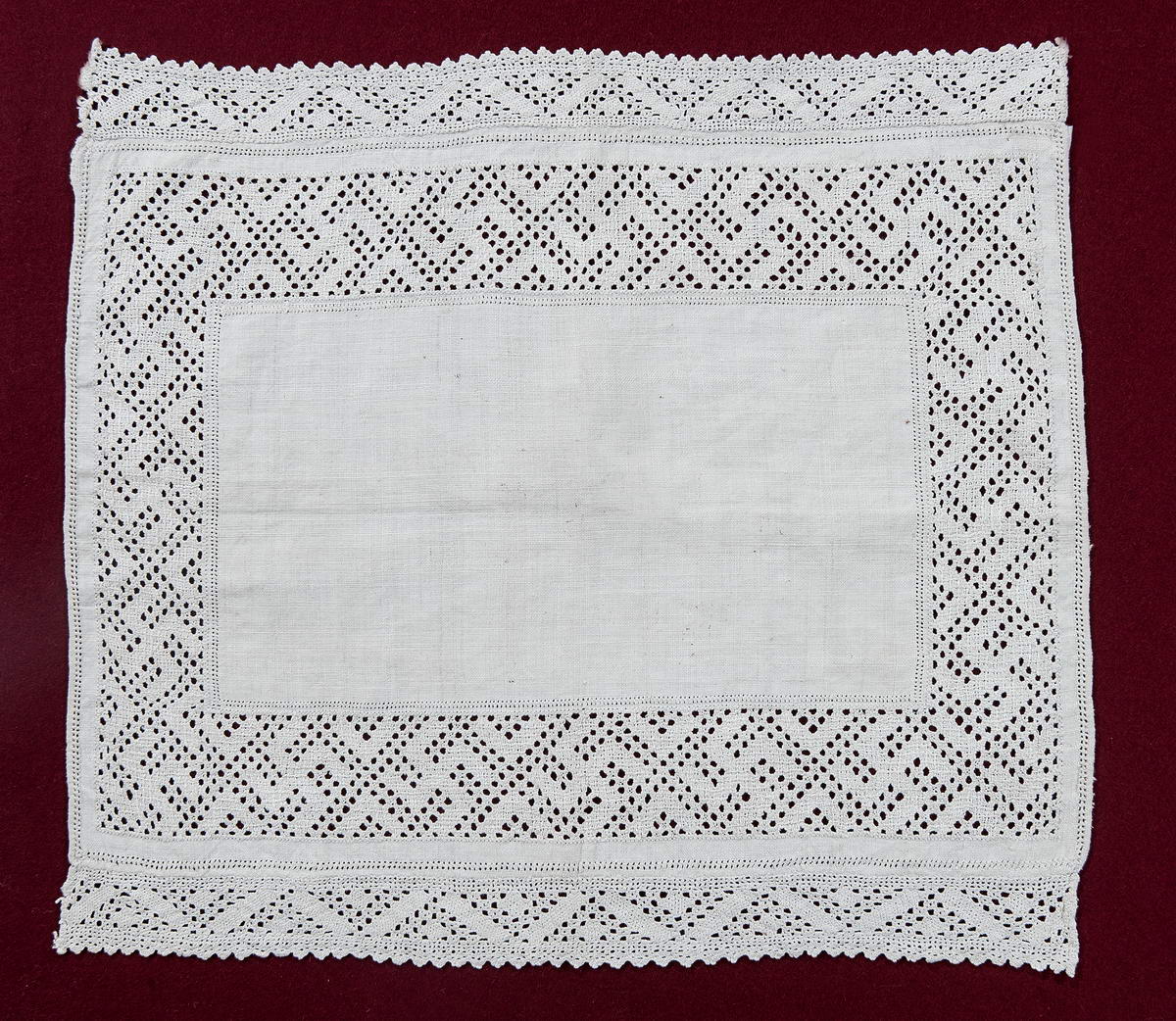 - Linen, linen, knitting, wool, silk ribbons, weaving, brocade, red calico, gold embroidery (by silver threads), fabric