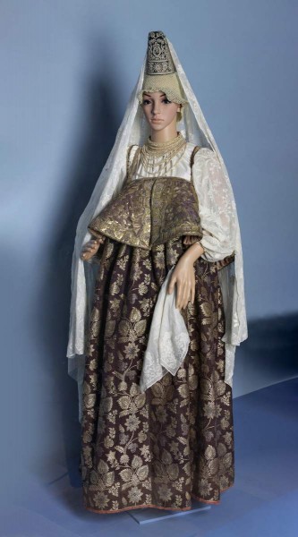 В середине ХIХ века наряд новоторок — жительниц города Торжка Тверской губернии, по воспоминаниям старожилов, был «в высшей степени роскошным. На голове носили белый платок, шитый золотом. Им прикрывали обычно часть головного убора, разукрашенного золотом, серебром и саженного жемчугом, и потому чрезвычайно богато и красиво расшивали конец платка, спускавшегося на спину. Предметами особой заботливости всех, носивших богатый новоторжский наряд, были белые кисейные рукава для сарафанов и кисейные же фартуки. Для них золота не жалели и буквально заливали так называемой «битью» всю верхнюю часть рукавов и низ фартуков» (Давыдова, 1914. С. 196). «Во всех ты, душенька, нарядах хороша». Народный женский костюм в России XVIII–ХХ веков. СПб, 2013. С. 53.