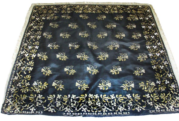 - Шелк, золотные нити, бить, блёстки, металлизированная бахрома, шитье в прикреп, шитье по карте. 105,0 х 107,0