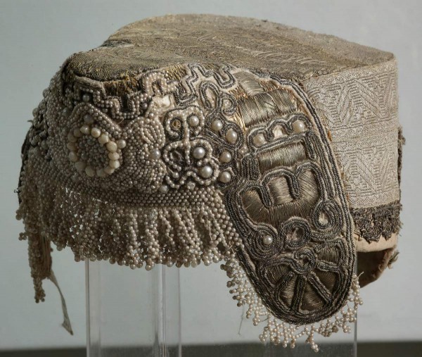 - Речной жемчуг, mother of pearl, beads, gold embroidery. 10 х 18 х 19