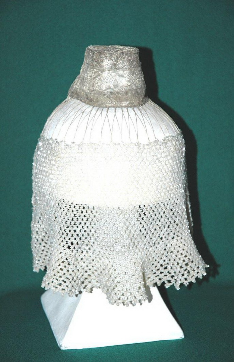 - Позумент, перламутр, низание, стекла, шитье жемчугом. 27 х 40; ширина сетки — 15