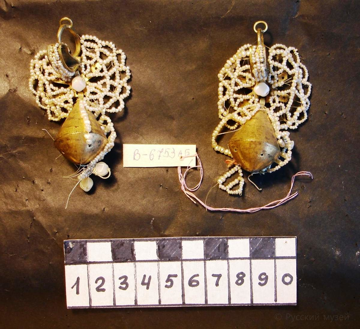 Удалены загрязнения. Восполнено жемчужное низание по аналогии.