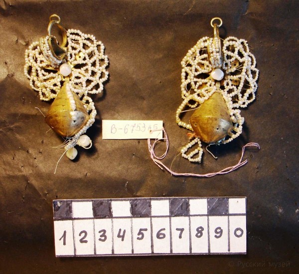 - Металл, перламутр, речной жемчуг, низание. 6 х 4,5 х 2,5