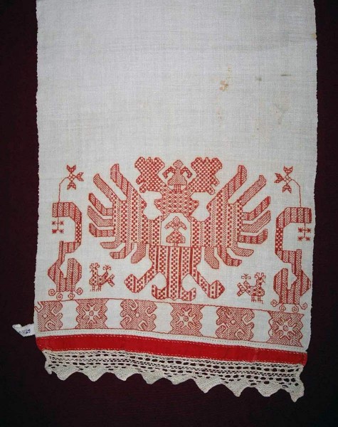 - Linen, paper, painting, embroidery. 34,5 х 198