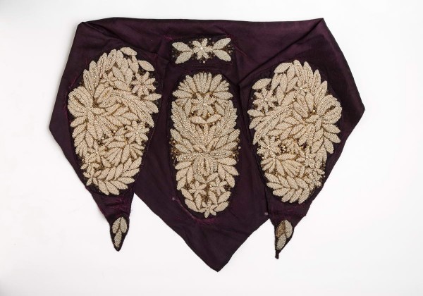 - Silk, шитье речным жемчугом и перламутром, spangles. 124 х 65