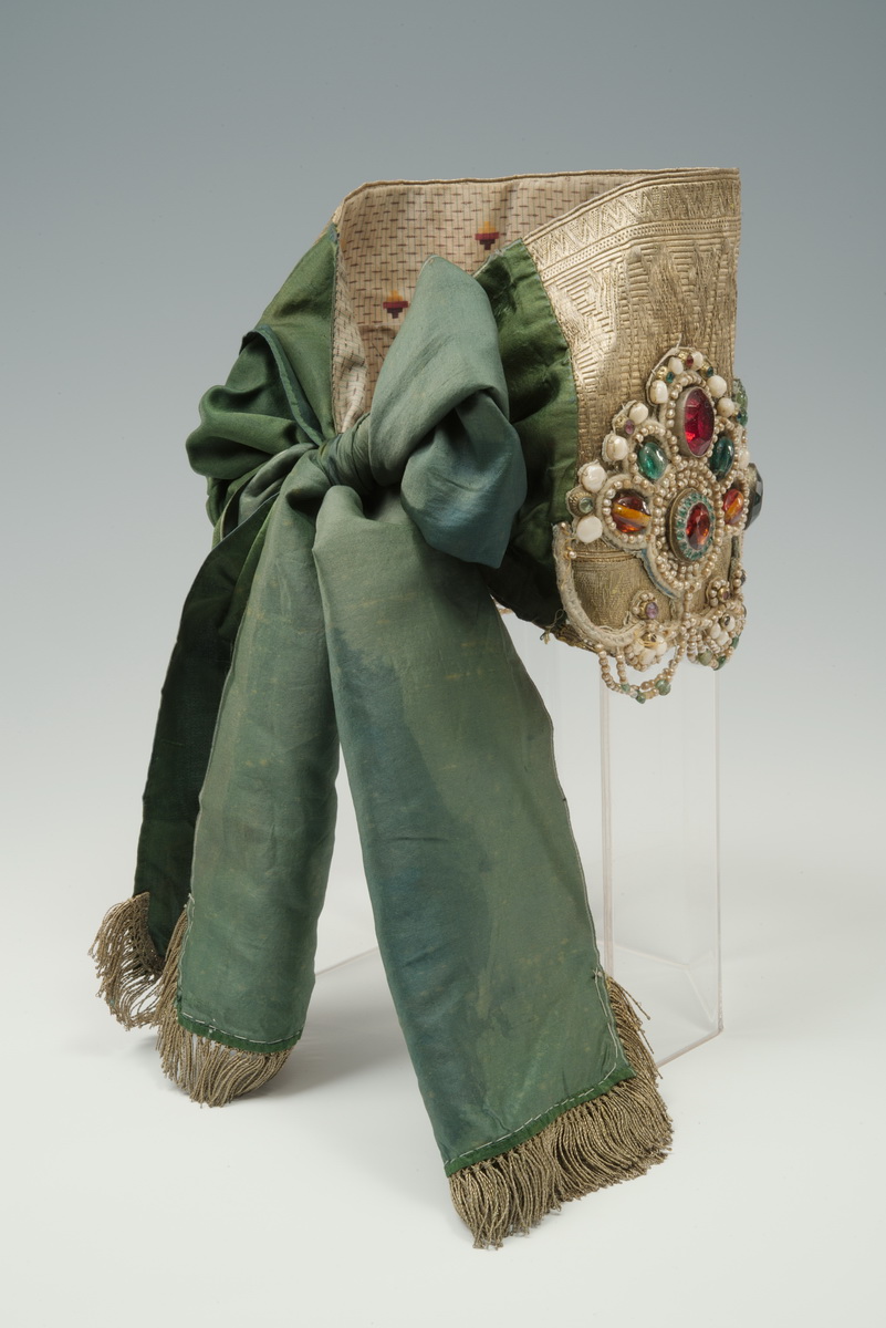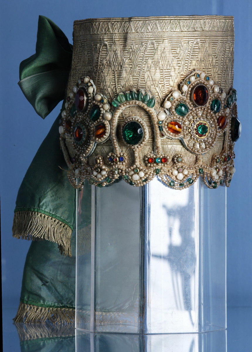 Особую выразительность нижегородским головным уборам и украшениям придавало обилие цветных стекол в сочетании с рубленым перламутром, бисером. Ограненные или округлые, как бусины, они сияли и переливались словно драгоценные камни. Во всех ты, душенька, нарядах хороша. Традиционный праздничный костюм XVIII–XX веков. СПБ, 2015. С. 71.